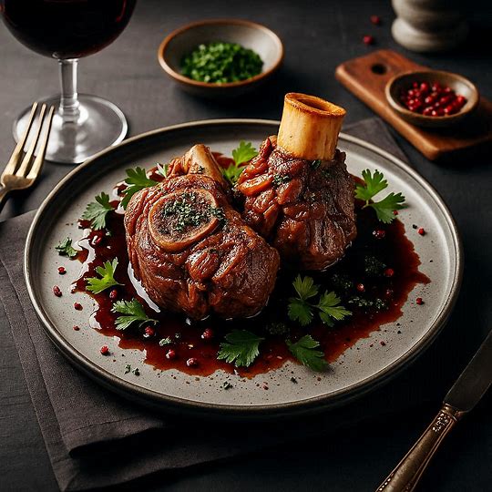 Dans une sauce au vin blanc et aux légumes, souvent garni de gremolata.